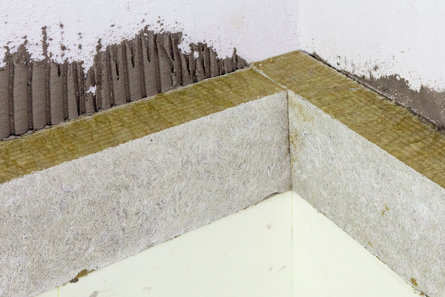 Bei der Mineralwolle Lamelle stehen die Fasern nach dem Kleben an der Wand senkrecht von der Wand weg. Die Lamelle hat dadurch bessere Haftzugwerte im Vergleich zur Mineralwolle Dämmplatte 035. In der Praxis kann daher auf sehr ebenen, monolithischen Untergründen auf eine zusätzliche Verdübelung der Lamelle verzichtet werden. Die Mineralwolle-Dämmplatte 035 wird immer zusätzlich verdübelt.
