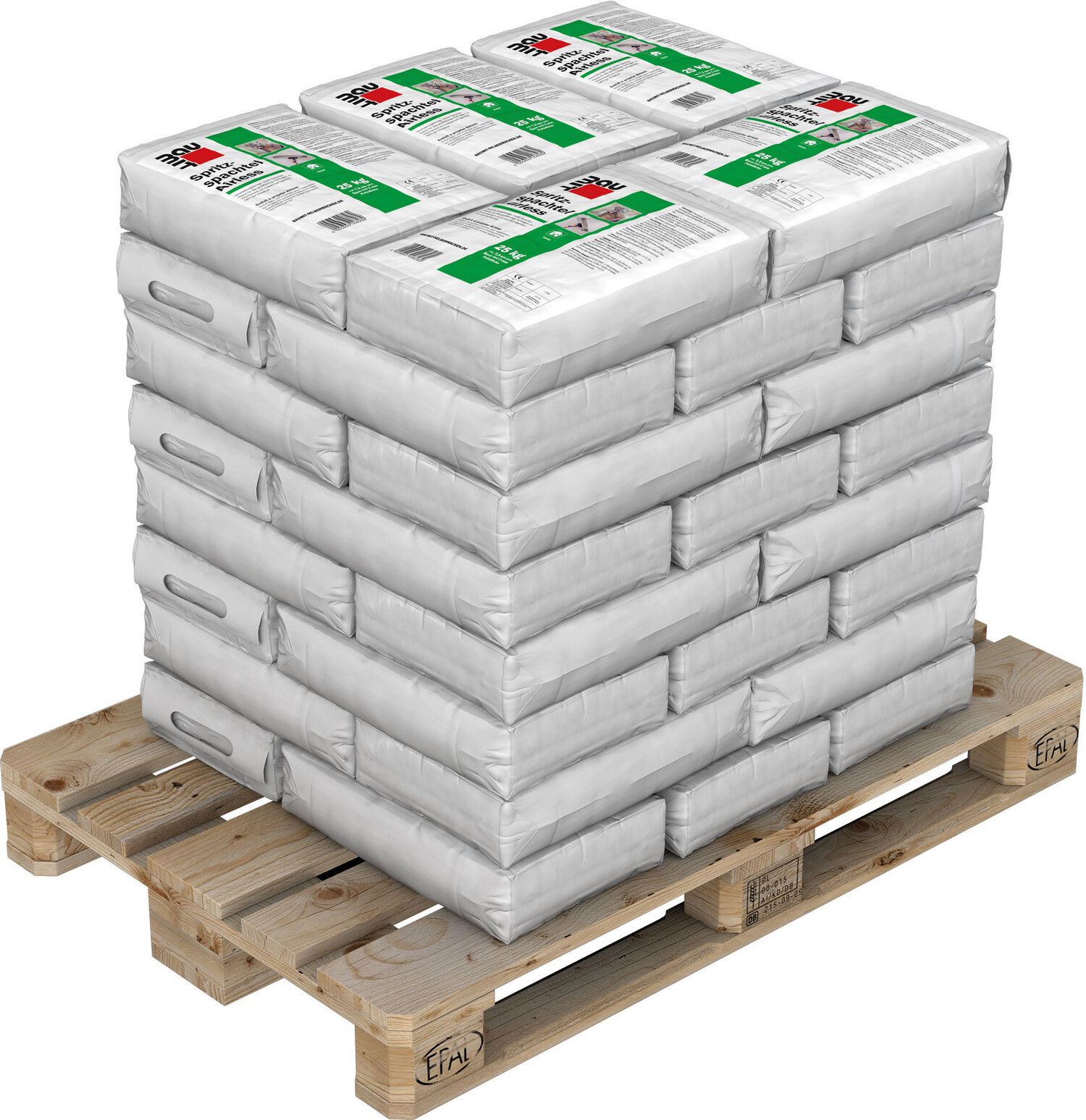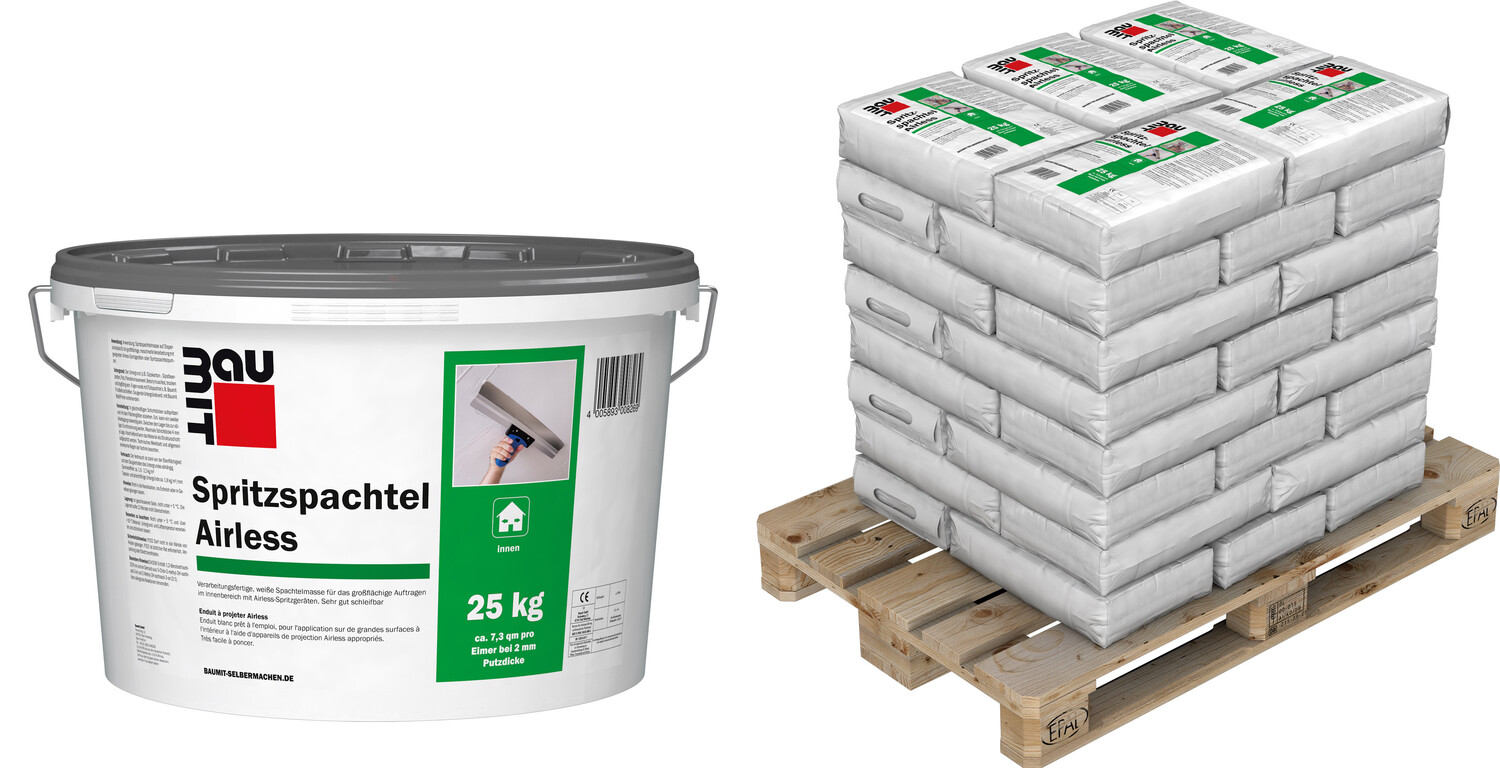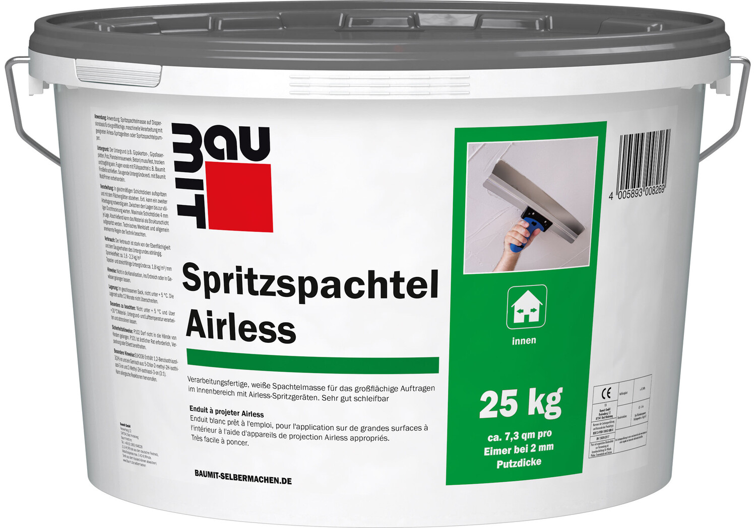 Enduit de dispersion blanc, prêt à l'emploi, contenant de la poudre de roche calcaire. Pour l'application sur de grandes surfaces à l'intérieur avec des appareils airless appropriés ou pour une application manuelle. Convient pour l'application ultérieure d'une peinture ou d'un papier peint.