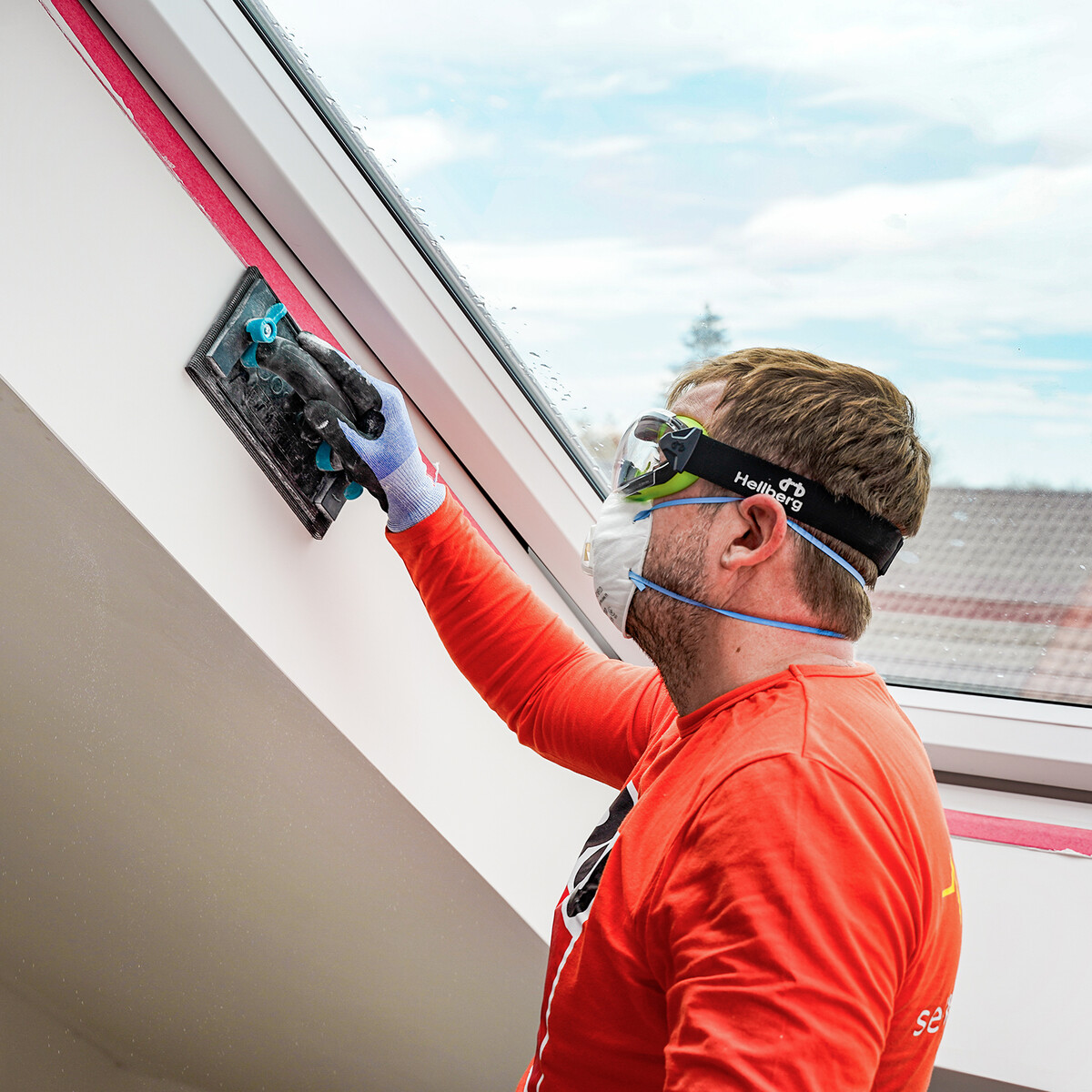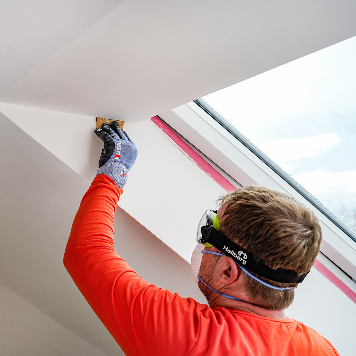 Avant de commencer les travaux de masticage, tu dois soigneusement masquer les éléments de construction adjacents, comme les fenêtres et les portes, afin de les protéger des salissures.