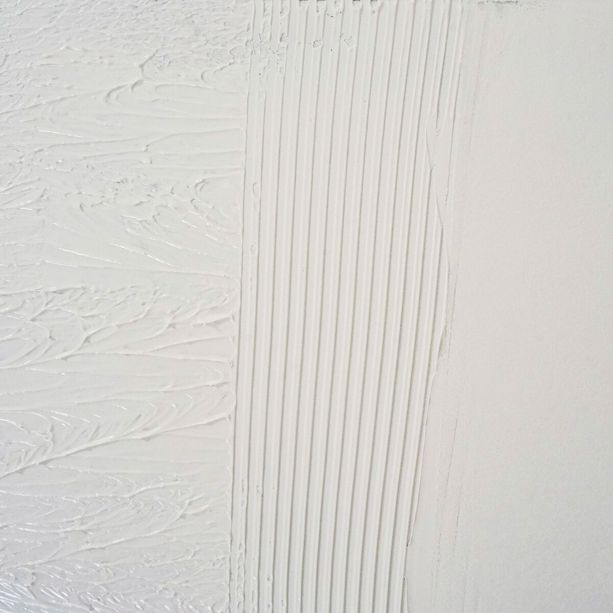 Ensuite, tu enlèves la bande supérieure (elle tombe généralement d'elle-même) et tu retires délicatement la bande inférieure. Aplanis délicatement la zone de jonction avec le couteau à enduire - le résultat doit être sans raccord et invisible.