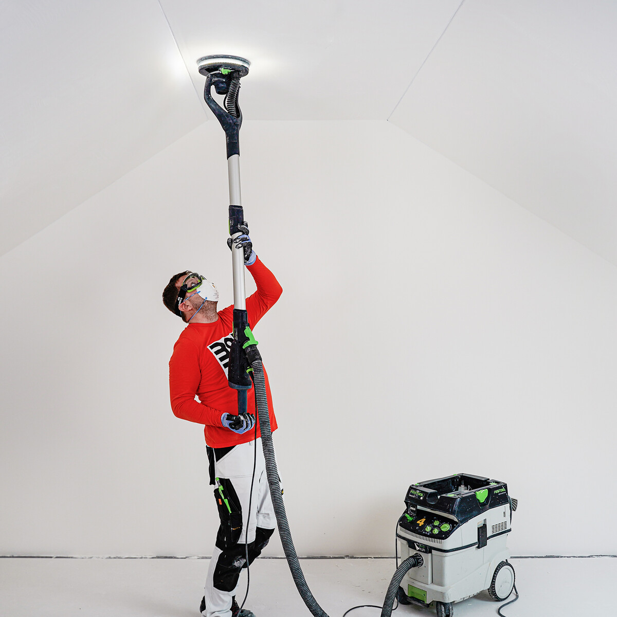 Les ponceuses modernes pour la construction à sec, comme la Festool PLANEX, disposent de couronnes de LED intégrées - une bonne alternative au spot.
