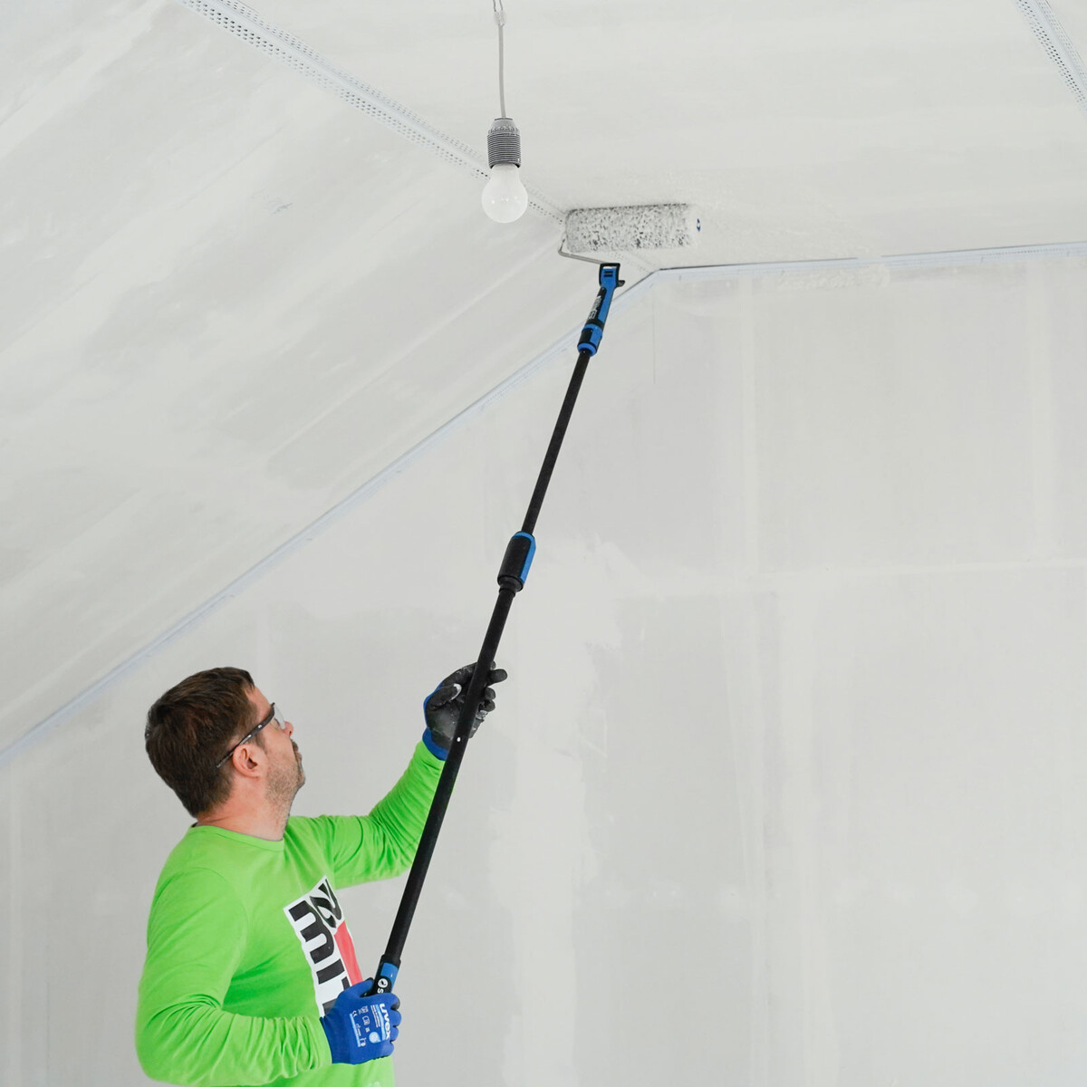 Grâce à un adaptateur, tu peux raccorder la Flexogrip à un manche télescopique - idéal pour les travaux au plafond, mais qui demande aussi beaucoup de force.
