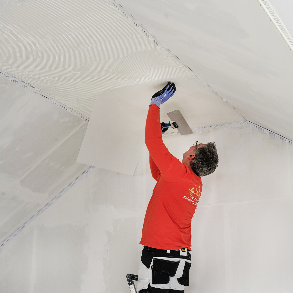 En raison de la diversité des conditions de chantier, les étapes de travail que nous présentons ne peuvent pas tenir compte de tous les cas particuliers. Elles montrent l'état actuel de nos expériences au moment de la réalisation des images et sont donc sans engagement. Respecte dans tous les cas les consignes du fabricant des produits et outils utilisés.