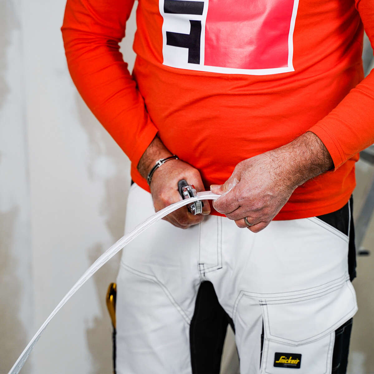 Pour aligner avec précision le profilé de joint de dilatation, nous te recommandons de travailler avec un laser en croix. Celui-ci t'aidera à créer une ligne de référence droite sur laquelle tu pourras t'orienter lors du montage.