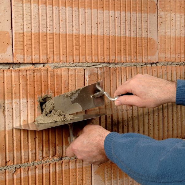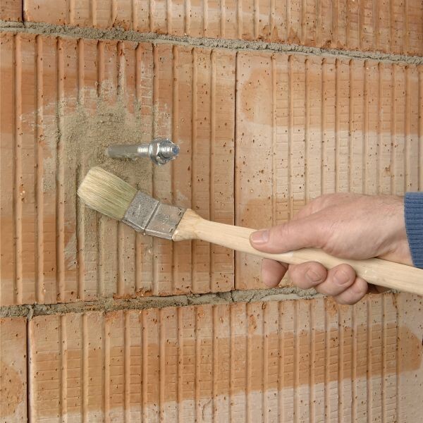 Enfonce immédiatement le mortier frais dans le trou, la fente, etc. préparé.