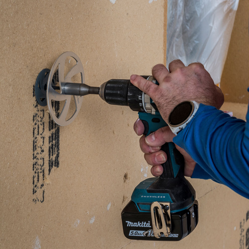 Le montage de la cheville à visser Thermotop S1 short est très simple et particulièrement rapide avec l'outil de pose Thermotop S1. La vis est vissée jusqu'à ce que le disque de l'outil de pose repose sur la surface du panneau isolant. Ensuite, l'embout se désengage automatiquement et la cheville est posée à fleur de surface.