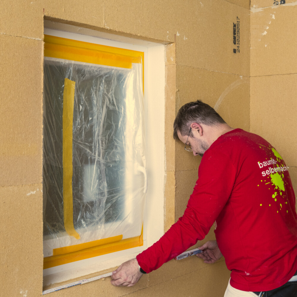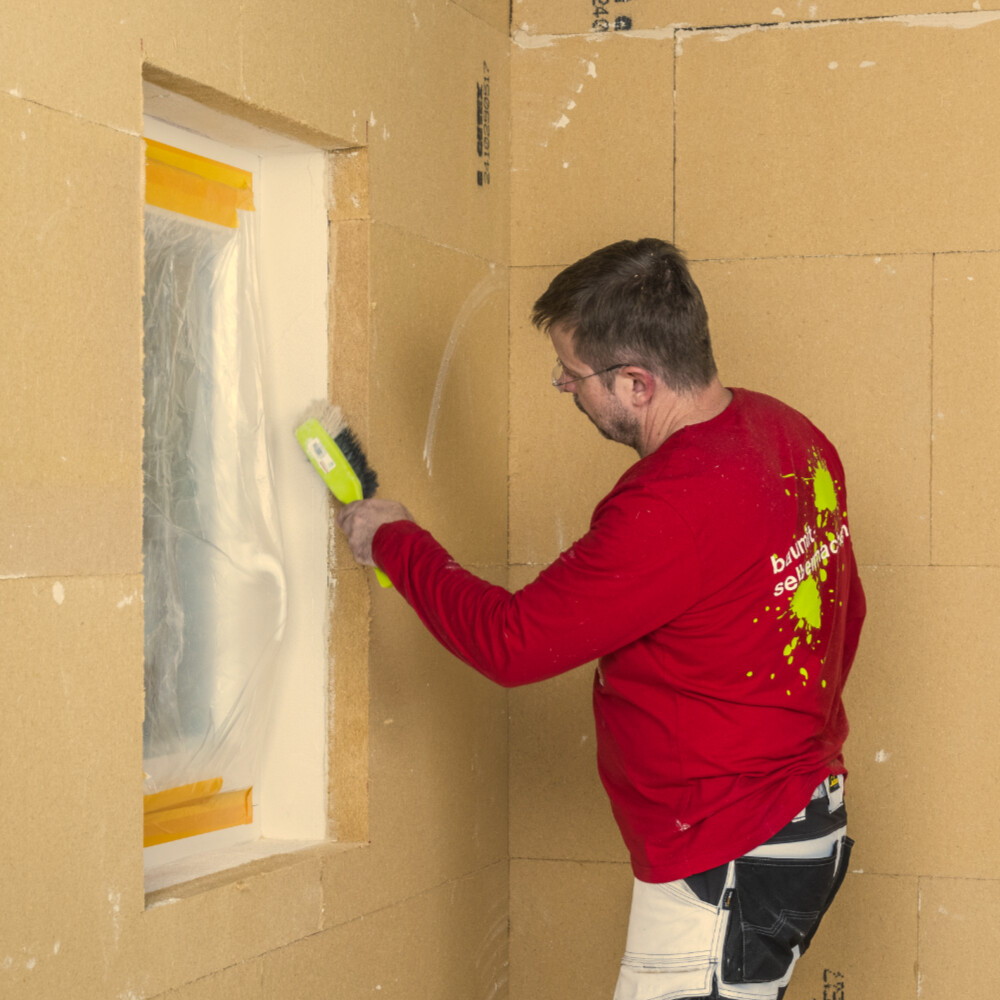 Balayer soigneusement les surfaces légèrement sablonneuses ou farineuses et appliquer un primaire avec l'apprêt de fond Baumit ou l'agent solidifiant pour l'argile. Prendre en compte nos conseils pour la pose d'une isolation intérieure. Tu trouveras d'autres conseils et remarques sur notre site web sous « Planification et préparation pour l'isolation intérieure » .