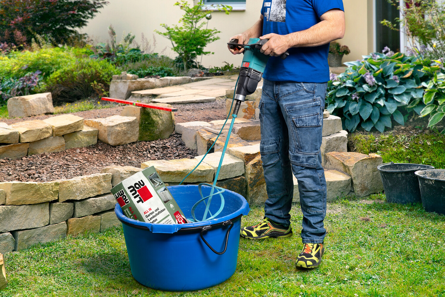 Si tu veux poser des bordures, le Support doit être porteur et bien compacté. Une fois que tu as creusé la tranchée à l'endroit où tu souhaites poser les bordures, pose d'abord une couche d'environ 10 à 15 cm d'Épaisseur de mélange minéral résistant au gel. Certains parlent aussi de la couche antigel. Tu peux trouver de tels mélanges minéraux de granulométrie 0/32 ou 0/45 généralement en big bag ou en vrac dans les magasins de bricolage bien achalandés ou dans les gravières.