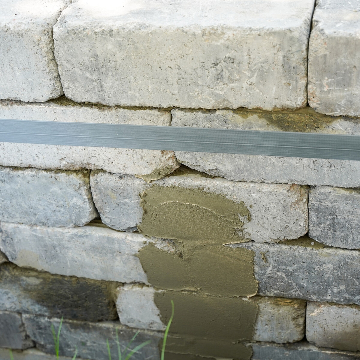 Attention : s'assurer que la maçonnerie est sèche, propre et exempte de poussière. Dans le cas d'une maçonnerie nouvellement maçonnée, le mortier de maçonnerie ou la colle à brique doit avoir pris complètement et être sec. La colle à pierre Trass Baumit sèche dans les 24 heures à des températures comprises entre 10 et 25 °C et par temps sec. Les mortiers de maçonnerie habituels ont besoin d'au moins une semaine pour durcir complètement.