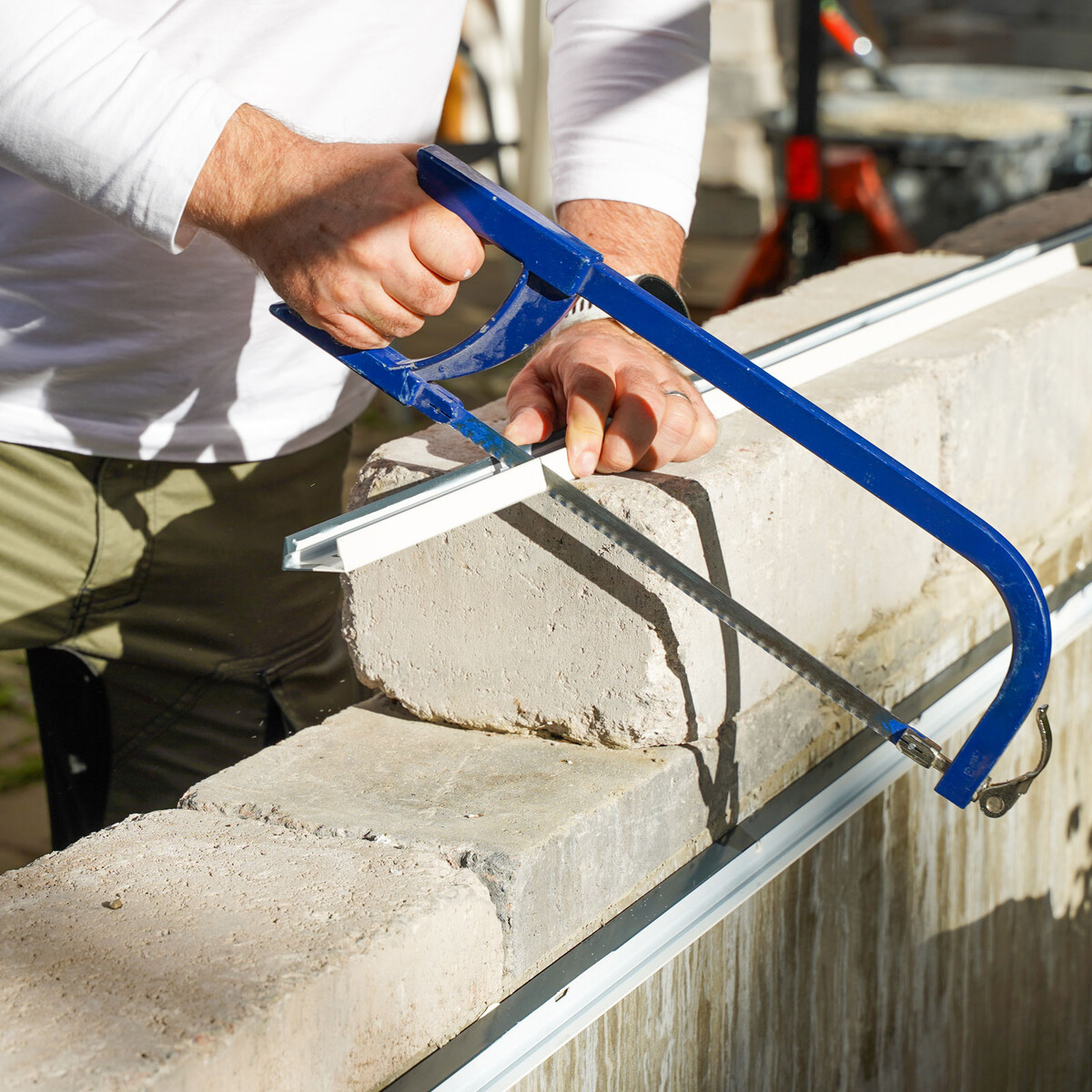 Si nécessaire, raccourcis le profilé de finition à l'aide d'une scie à métaux ou d'une scie à onglet équipée d'une lame pour métal.
