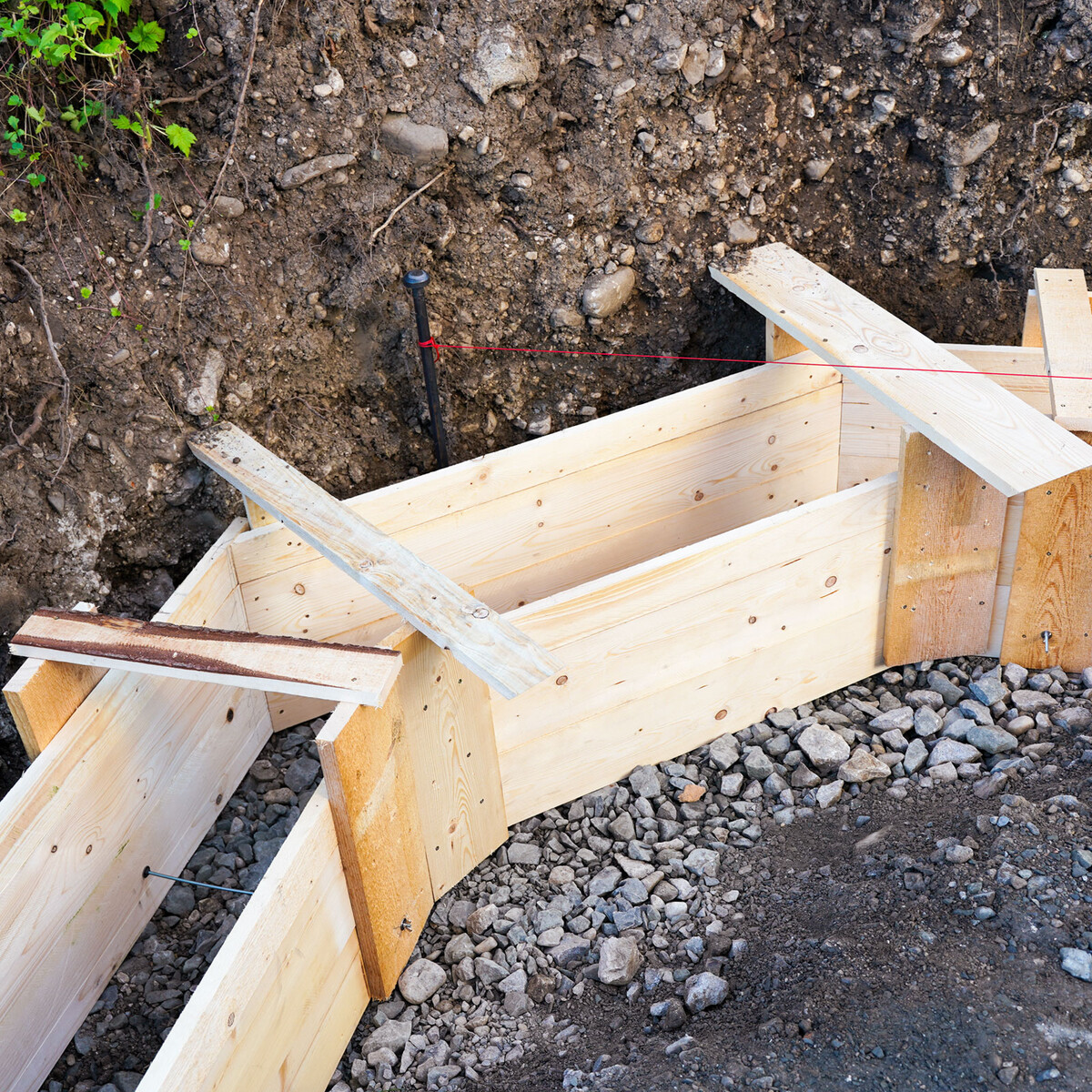 Pour que tes fondations soient stables et de dimensions précises, tu as besoin d'un coffrage bien ajusté. Dans ce guide, tu apprendras pas à pas comment construire un coffrage pour une fondation en bandes à partir de planches de coffrage et comment poser le coffrage. Pour ce faire, nous avons pris en compte un angle de 90° et un angle de 45°.