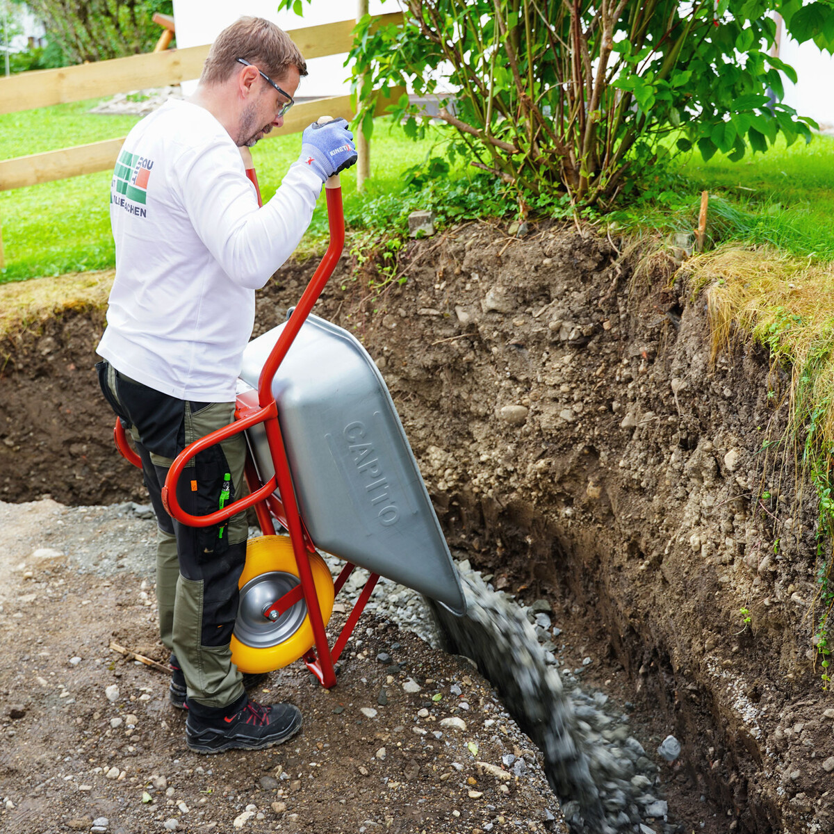 Compactez donc soigneusement le sol afin d'éviter les tassements et veillez à ce que le gravier antigel soit réparti uniformément et également compacté. Tu éviteras ainsi les dégâts dus au gel et garantiras des fondations solides.