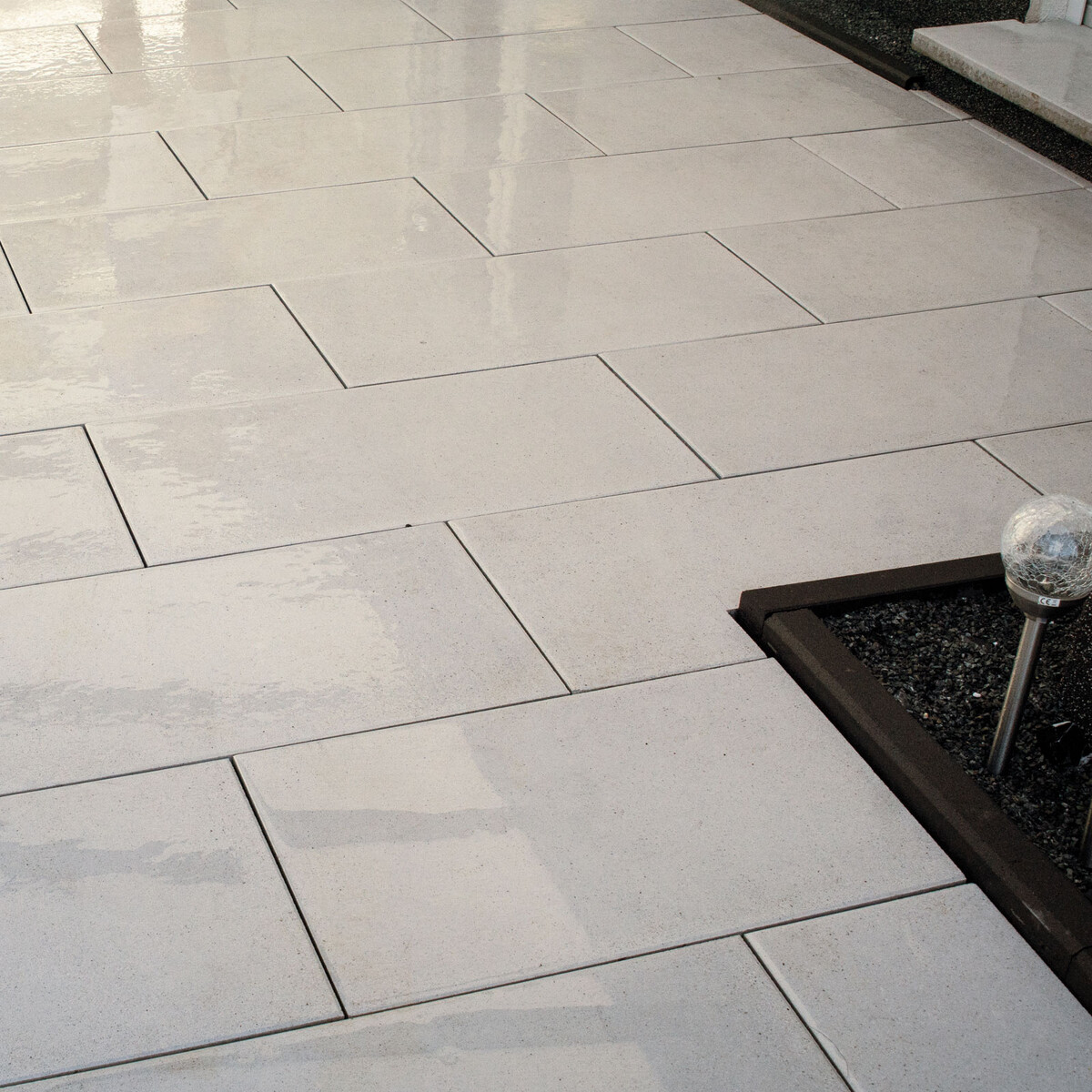 La saturation complète du revêtement en eau empêche éventuellement le liant du mortier de jointoiement pour pavés Fix de pénétrer dans la pierre. Cela pourrait entraîner la formation d'une brillance indésirable.