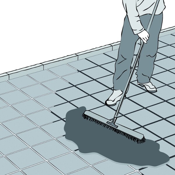 Pour mettre en place le Mortier pour joints de pavages Fix robuste, humidifier d'abord abondamment la surface, puis balayer fermement le Matériau dans les joints à l'aide d'un gros balai de rue en le compactant. Balayer le matériau restant sur les dalles ou les pierres en diagonale par rapport au joint à l'aide d'un balai fin.