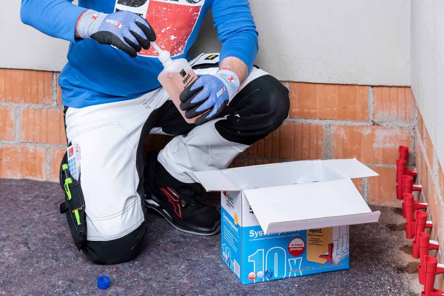 Tiefenwirksames Verkieselungskonzentrat zur Abdichtung gegen aufsteigende Feuchtigkeit im Mauerwerk im drucklosen Verfahren. Wird mit den inject Kapillarstäbchen sicher, schnell und einfach in die Mauerwerksfuge von einschaligen Wänden eingebracht.