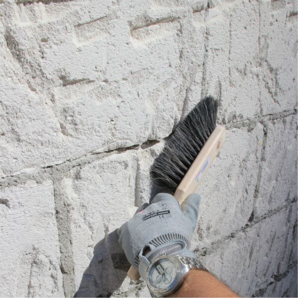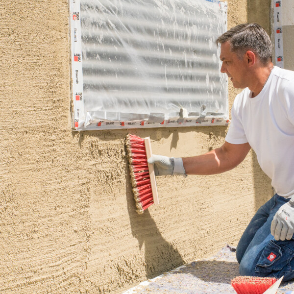 Après que l'enduit a déjà légèrement pris, la surface est brossée avec précaution. La couche de frittage est ainsi détruite et la meilleure base est créée pour que la prochaine couche d'enduit puisse s'accrocher de manière idéale au support.