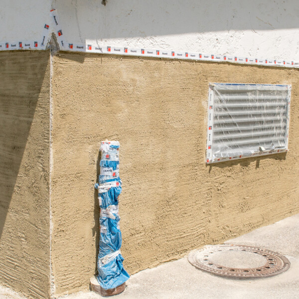 En cas de températures très élevées (> 25 °C), de rayonnement solaire direct et de vent fort, la couche d'enduit fraîche doit être protégée contre un séchage trop rapide. En cas de besoin, suspends par exemple un voile de peintre ou une bâche d'échafaudage devant la surface. Veille toutefois à assurer une ventilation arrière pour que l'enduit puisse sécher.