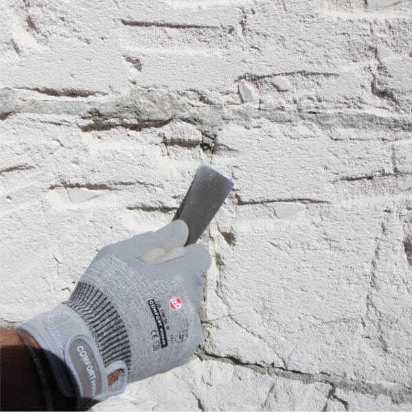 De nombreux enduits, mortiers ou mastics contiennent des matières premières alcalines comme le ciment ou la chaux. Un gant de travail adapté protège ta peau de tout contact direct.