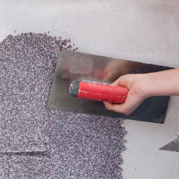 Pour les structures particulièrement granuleuses, nous te recommandons une planche à râper en polystyrène. La surface de travail plus souple met particulièrement bien en valeur la granulométrie de l'enduit décoratif - idéal par exemple pour les enduits décoratifs minéraux tels que l'Enduit taloché, l'Edelweiss Structo ou l'INStyle Edelweiss.