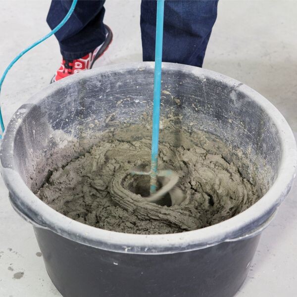 Pour que tu obtiennes un mélange homogène et sans grumeaux avec le mélangeur, il est particulièrement recommandé d'utiliser un seau à mortier rond.