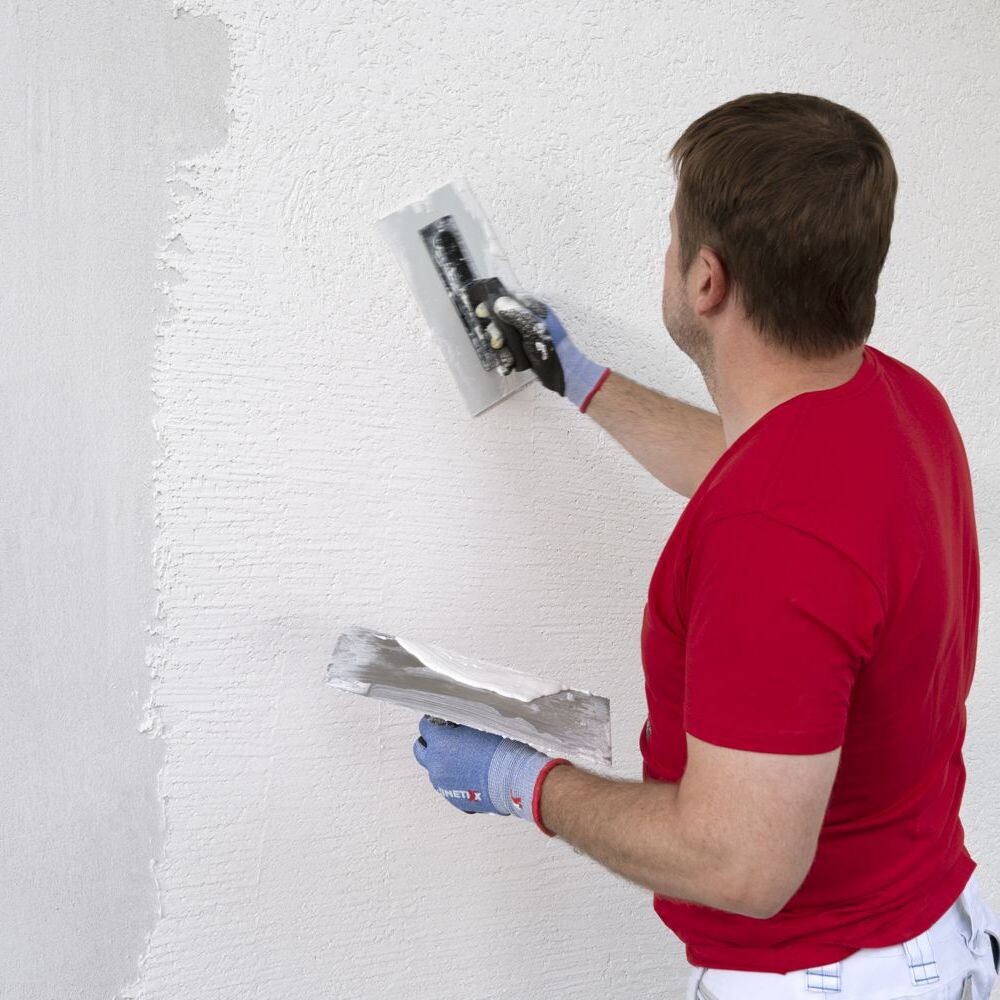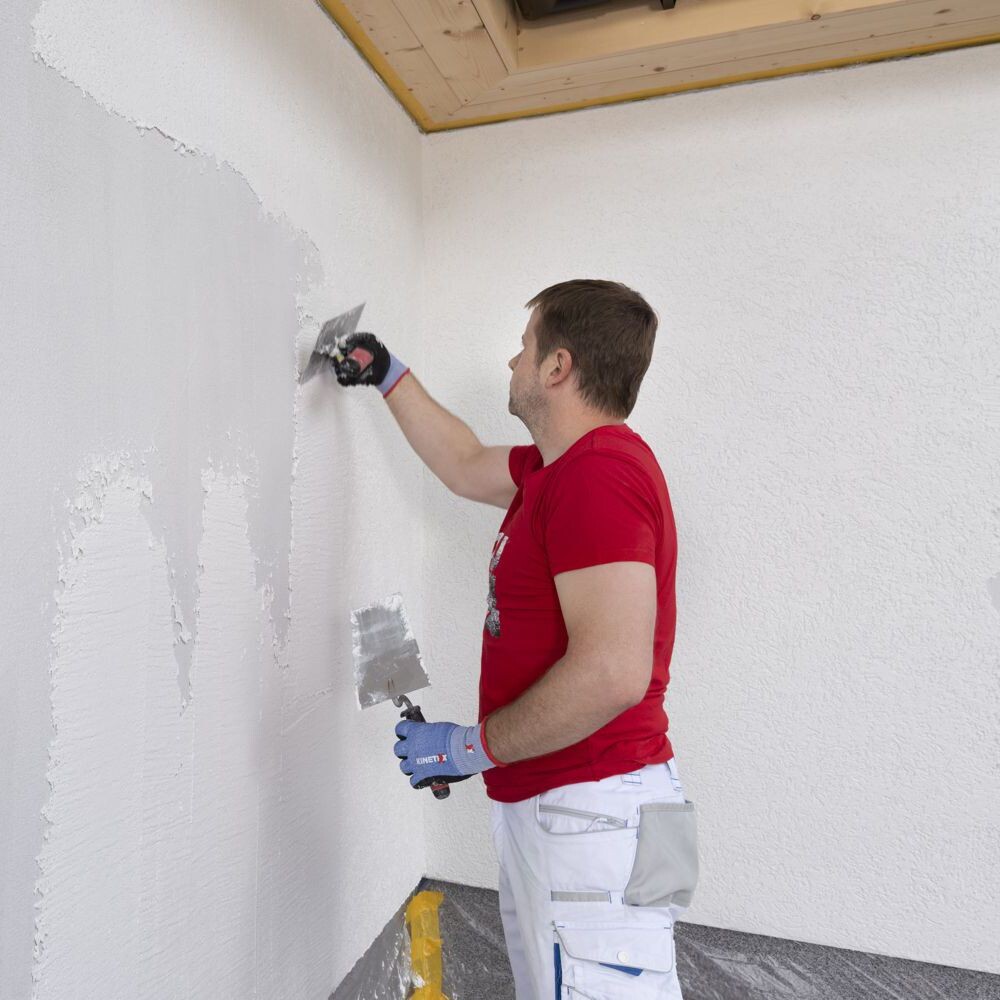 Travaille de haut en bas lors de l'application de l'enduit rainuré. Ainsi, les chutes de Matériau n'endommageront pas la surface d'enduit déjà terminée qui se trouve éventuellement en dessous.
