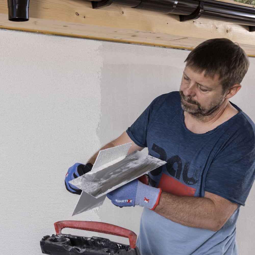 Nous te recommandons de porter des gants anti-coupure, car les truelles et les enduits de lissage avec leurs bords métalliques présentent toujours un risque de blessure.