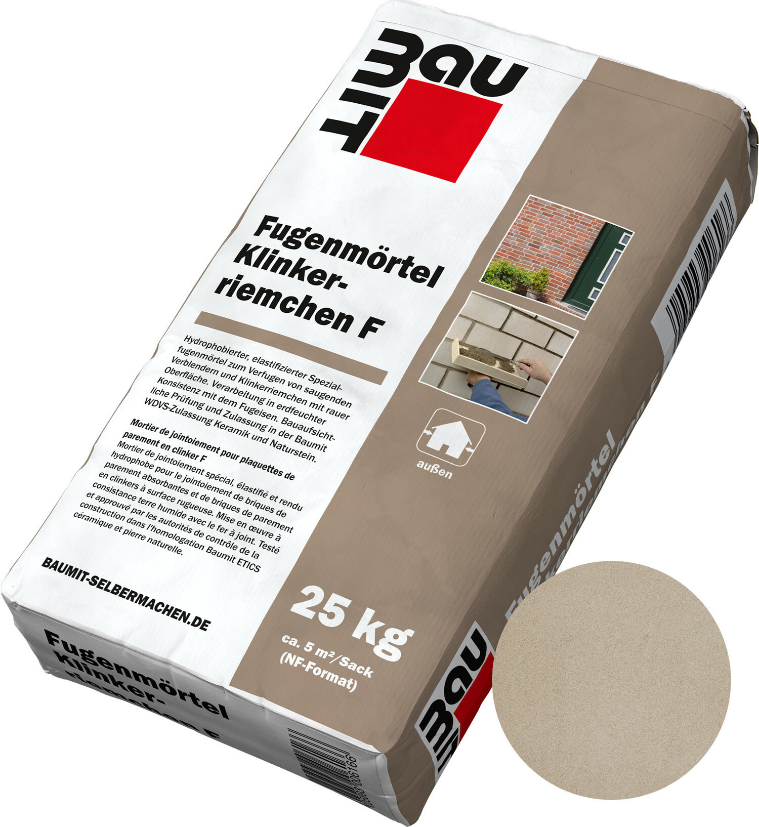 - Pour le jointoiement ultérieur de maçonneries apparentes (par ex. en briques, clinkers, briques silico-calcaires, blocs de béton) et de revêtements.