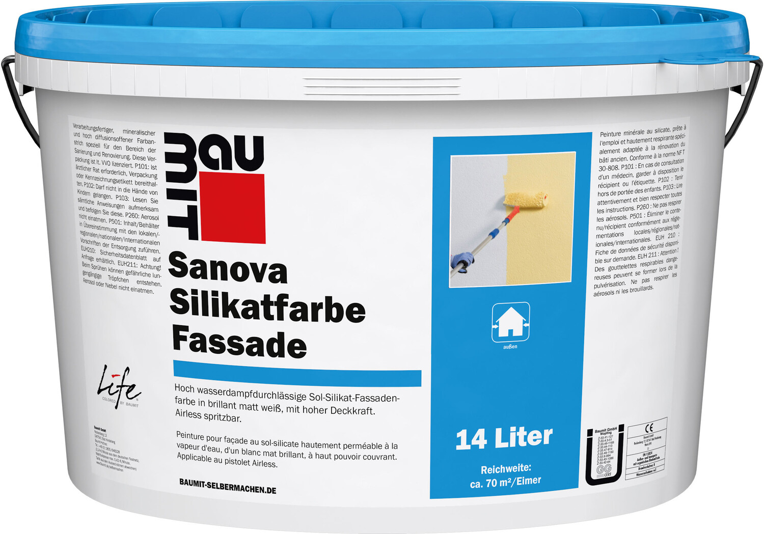 Peinture de façade hautement perméable à la vapeur d'eau, sans biocide, à base de silicate sol-gel pour extérieur, comme revêtement couvrant en neuf et en rénovation. Applicable sur enduits minéraux (enduit chaux-ciment, enduit structuré), béton et sur systèmes d'isolation thermique par l'extérieur.