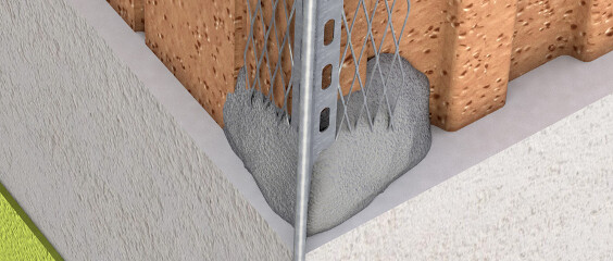 Pour protéger les arêtes et les angles, on pose des rails de protection d'angle inoxydables avant d'appliquer le crépi de façade. Il est possible d'utiliser des profilés de protection d'angle dont l'a