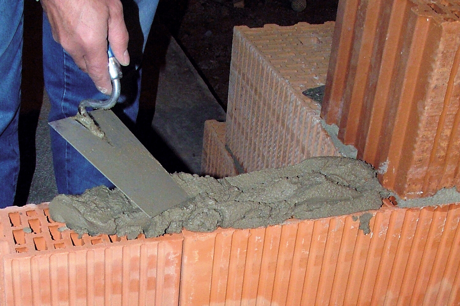 Les mortiers tels que le mortier universel Baumit ou le mortier de parement peuvent résister à ces contraintes et conviennent parfaitement au maçonnage des briques. De plus, du trass est ajouté à ces deux mortiers afin de réduire le risque d'efflorescence de chaux.