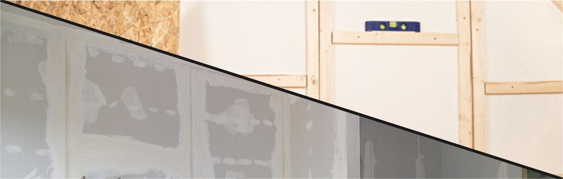 Par exemple : panneaux de placoplâtre ou de fibres de plâtre et panneaux de bois (OSB)