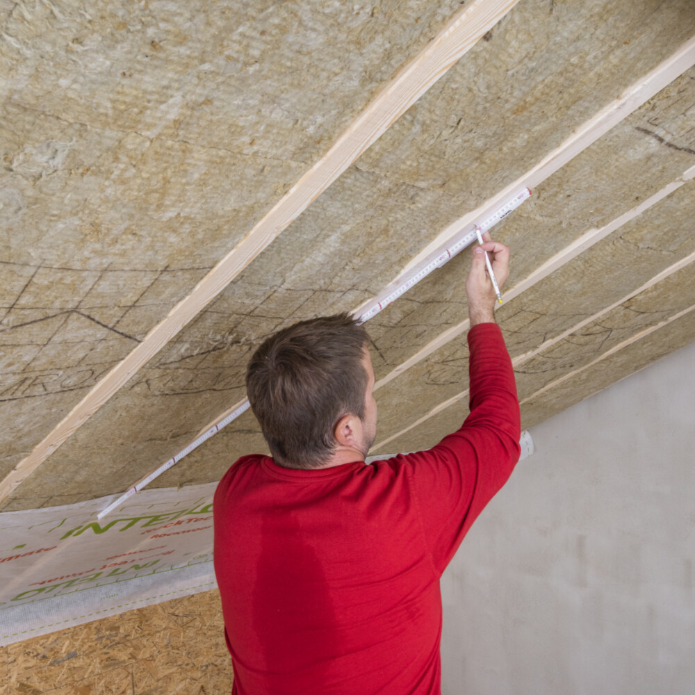 Avant de commencer la pose du Kalkin Klima-Board, nous te recommandons d'installer une isolation sous les chevrons comme couche d'isolation supplémentaire et niveau d'installation.