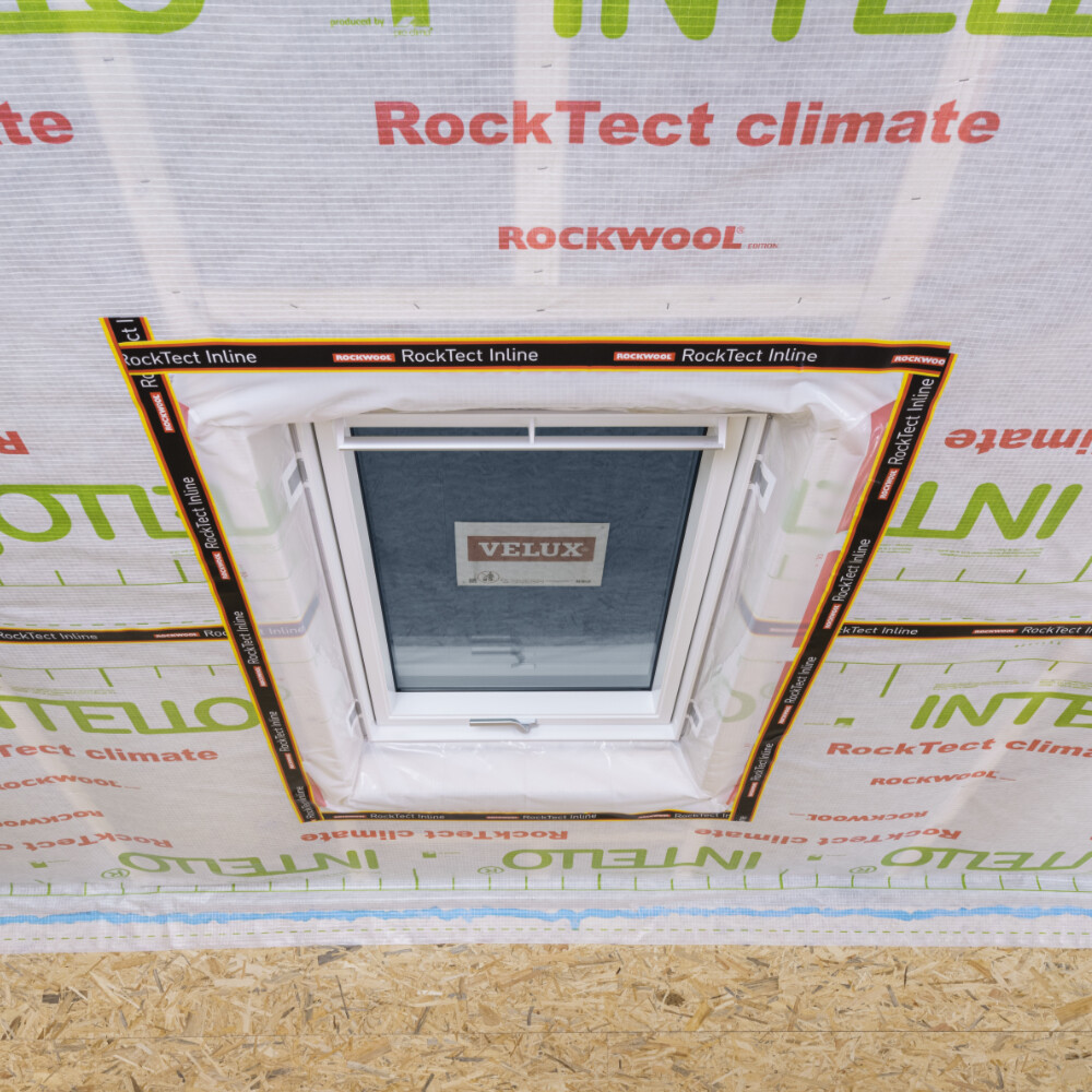 Après la pose complète du pare-vapeur, il faut éventuellement encore raccorder une fenêtre de toit au film pare-vapeur.