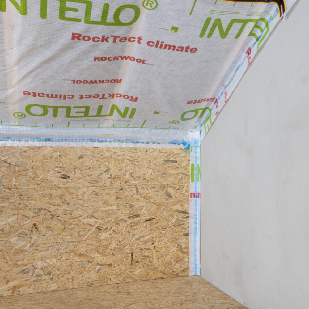 Dans les coins, le pare-vapeur doit être collé sans espace et de manière étanche à l'air. Nous te recommandons de coller le film avec un pli dans ces zones.
