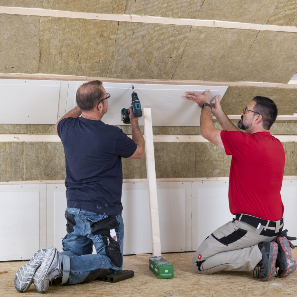 Si un montage sur des pentes de toit est souvent réalisable seul, un soutien est très utile pour le montage au plafond et à des hauteurs plus importantes.