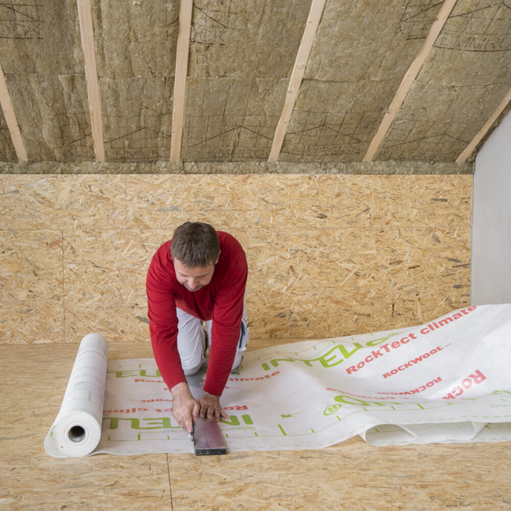 Veille à ce que le pare-vapeur soit posé sans plis. Le film doit également être posé avec une légère tension, c'est-à-dire sans être trop serré.