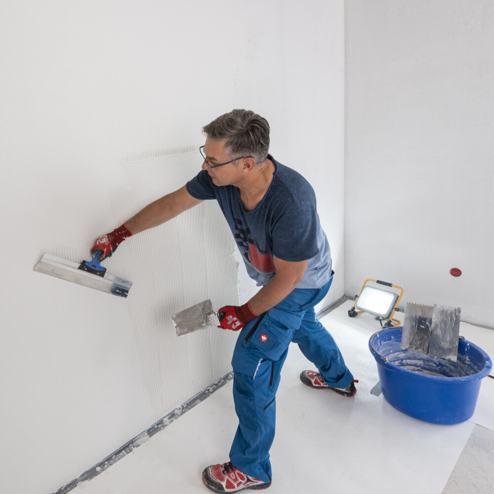 De nombreux enduits, mortiers ou mastics contiennent des matières premières alcalines comme le ciment ou la chaux. Un gant de travail adapté protège ta peau de tout contact direct.