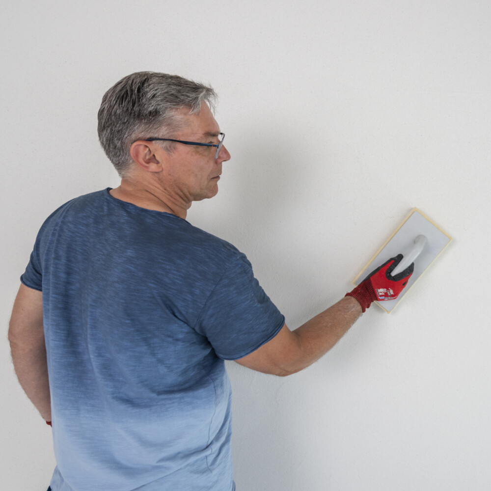 Nous te recommandons de porter des gants anti-coupure, car les truelles et les enduits de lissage avec leurs bords métalliques présentent toujours un risque de blessure.