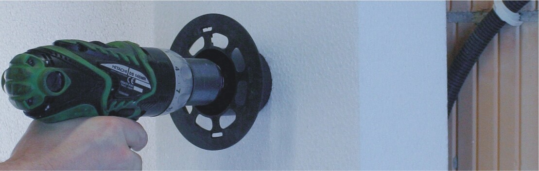 Avec l'outil de fraisage fourni et une visseuse sans fil, tu perces un trou dans le Panneau isolant à l'endroit choisi.