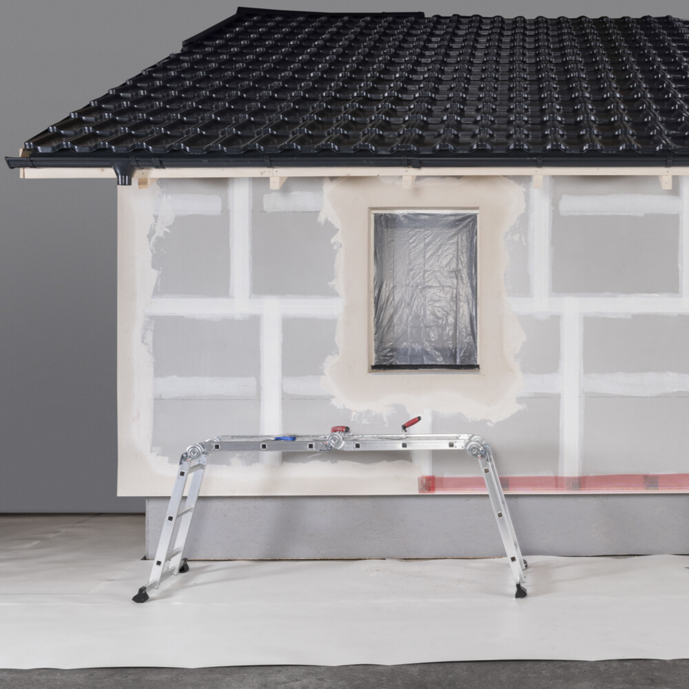 Comme tu devras appliquer un certain nombre de matériaux, il n'est pas recommandé de travailler depuis une échelle.