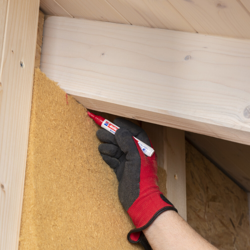 Une fois la première poutre posée, tu peux passer aux suivantes. Nous te recommandons de découper un gabarit d'espacement. Cela rend la pose plus facile et plus rapide.