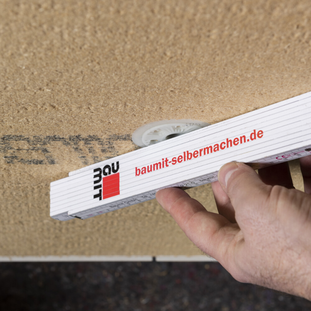 Pour un panneau isolant Gutex GF entier de 1300 x 600 mm, il faut visser 3 chevilles en ligne les unes au-dessus des autres par bois porteur.
