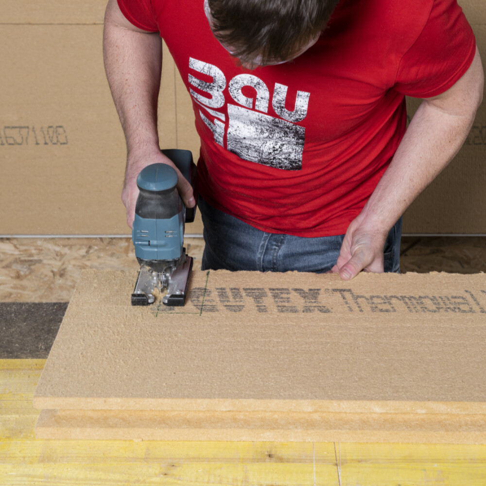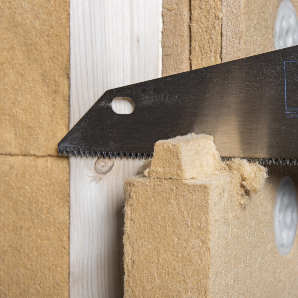 Pour le Thermowall gf de 60 mm d'épaisseur que nous avons utilisé, nous avons découpé l'ouverture à l'aide d'une scie sauteuse.