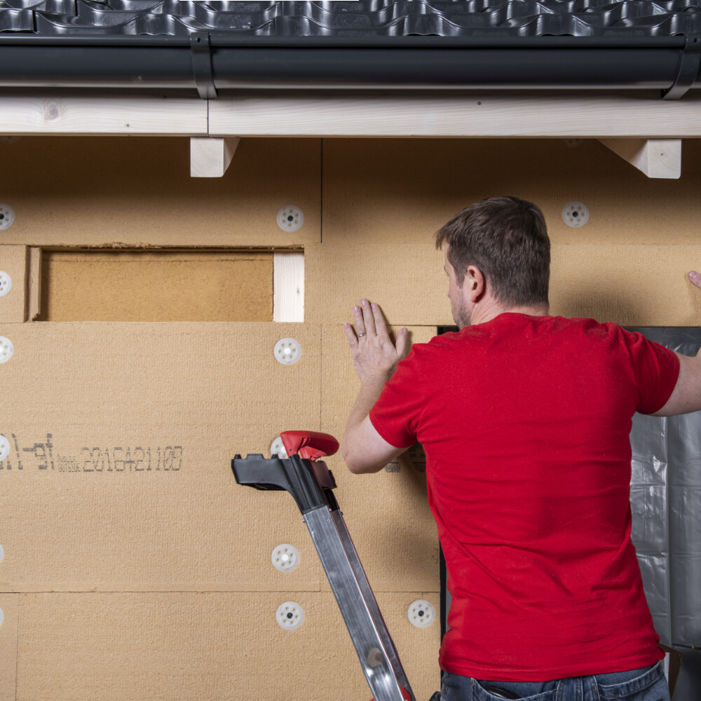 Dans ces Instructions, nous te montrons les étapes de base pour le montage d'un Panneau isolant en fibres de bois pour façades isolantes non ventilées, autorisé par le fabricant pour cette utilisation. Il s'agit d'un panneau dit "support d'enduit", il est donc autorisé pour un enduisage ultérieur.