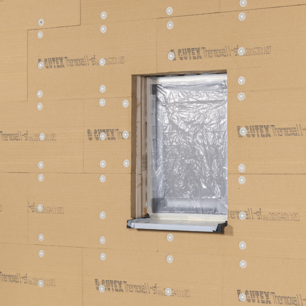 Après le montage du premier panneau isolant, complète la découpe de la fenêtre du côté opposé.