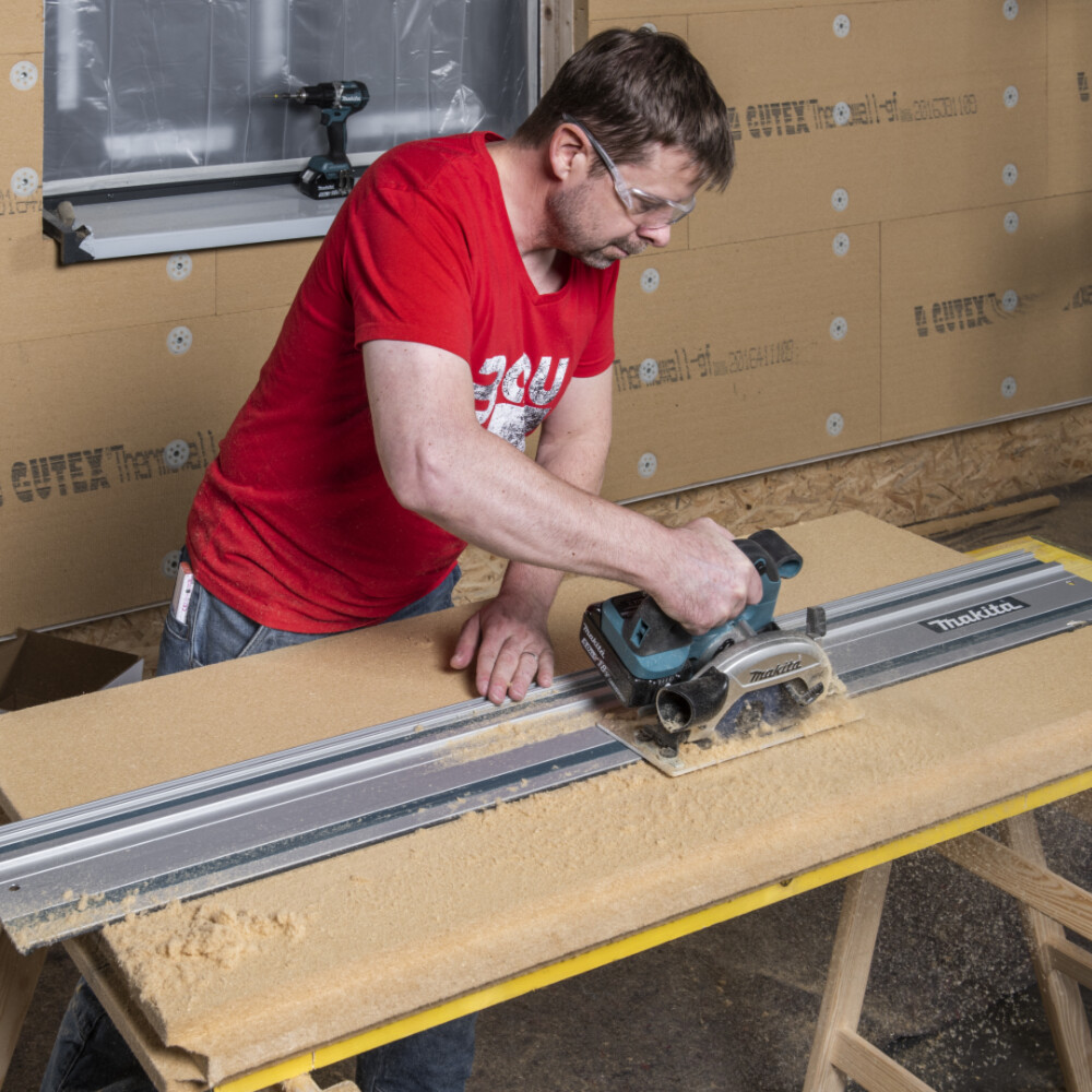 Vérifie que la profondeur de coupe de la scie circulaire à main est suffisante pour le panneau isolant utilisé. Makita propose des scies circulaires manuelles d'une profondeur de coupe allant jusqu'à 130 mm.