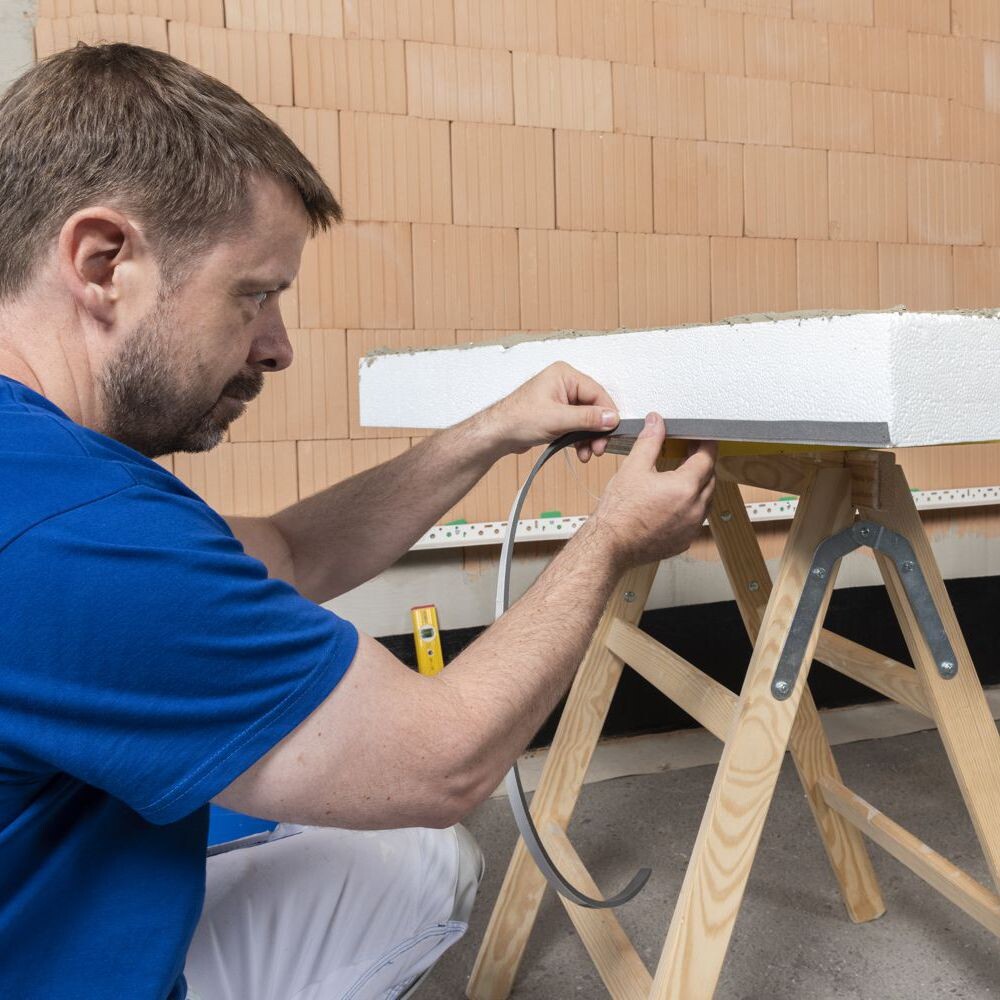 Une découpeuse à fil chaud (découpeuse de polystyrène) est un soulagement considérable pour les longues coupes à un angle précis. Tu peux louer ces appareils chez un loueur de machines de chantier bien achalandé.