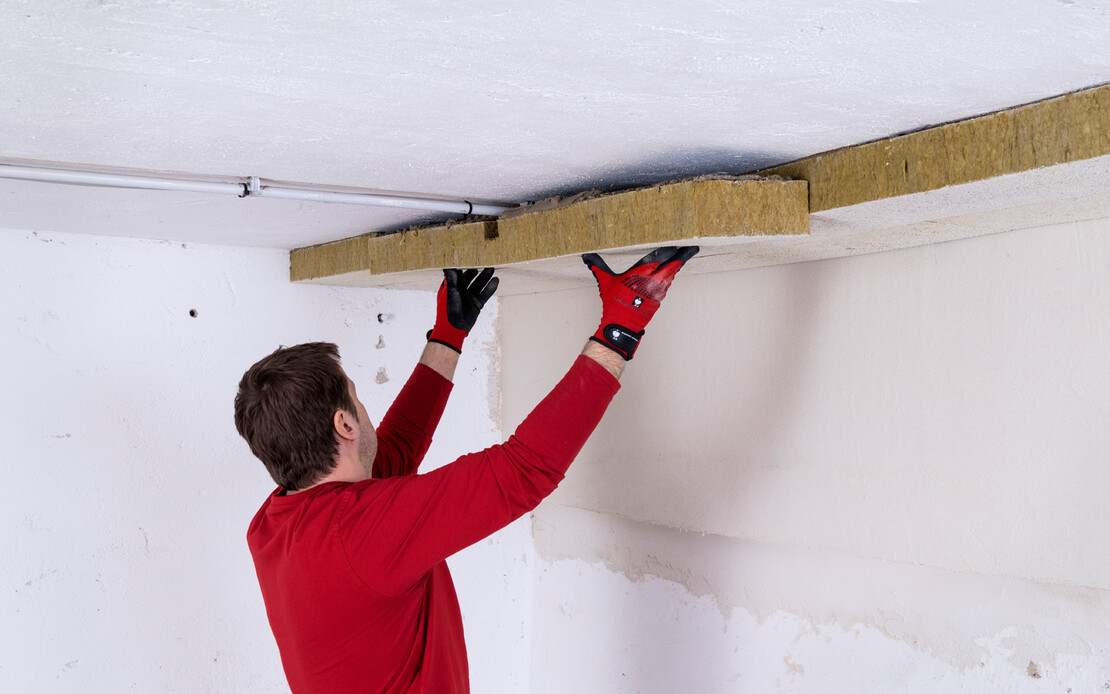 Colle le plus rapidement possible le panneau isolant pour plafond de cave préparé sur le plafond de la cave.