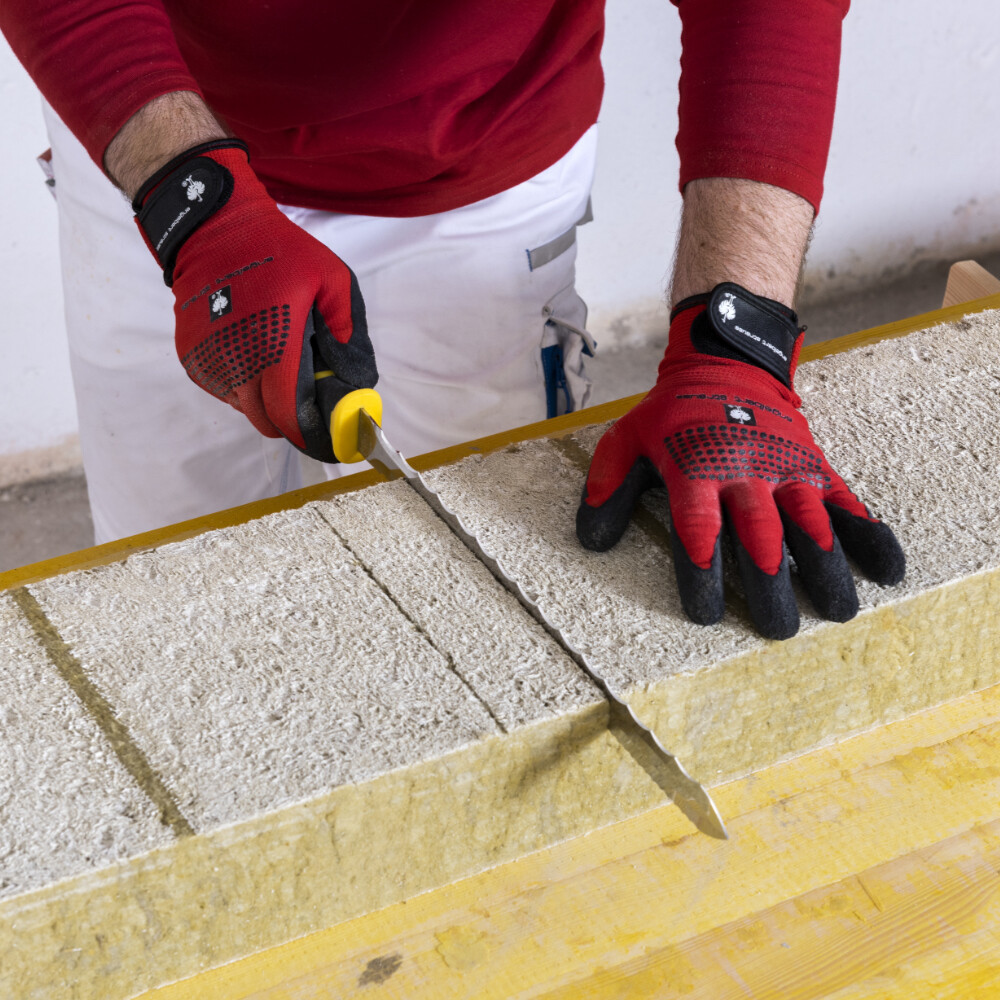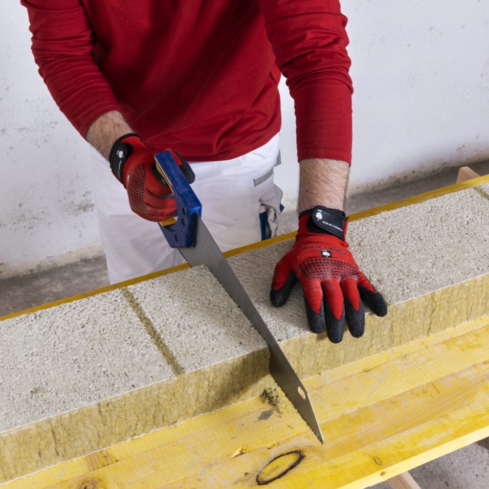 Le panneau isolant minéral pour plafonds de cave peut être découpé sur mesure de manière simple et rapide à l'aide d'une scie à main (scie égoïne).
