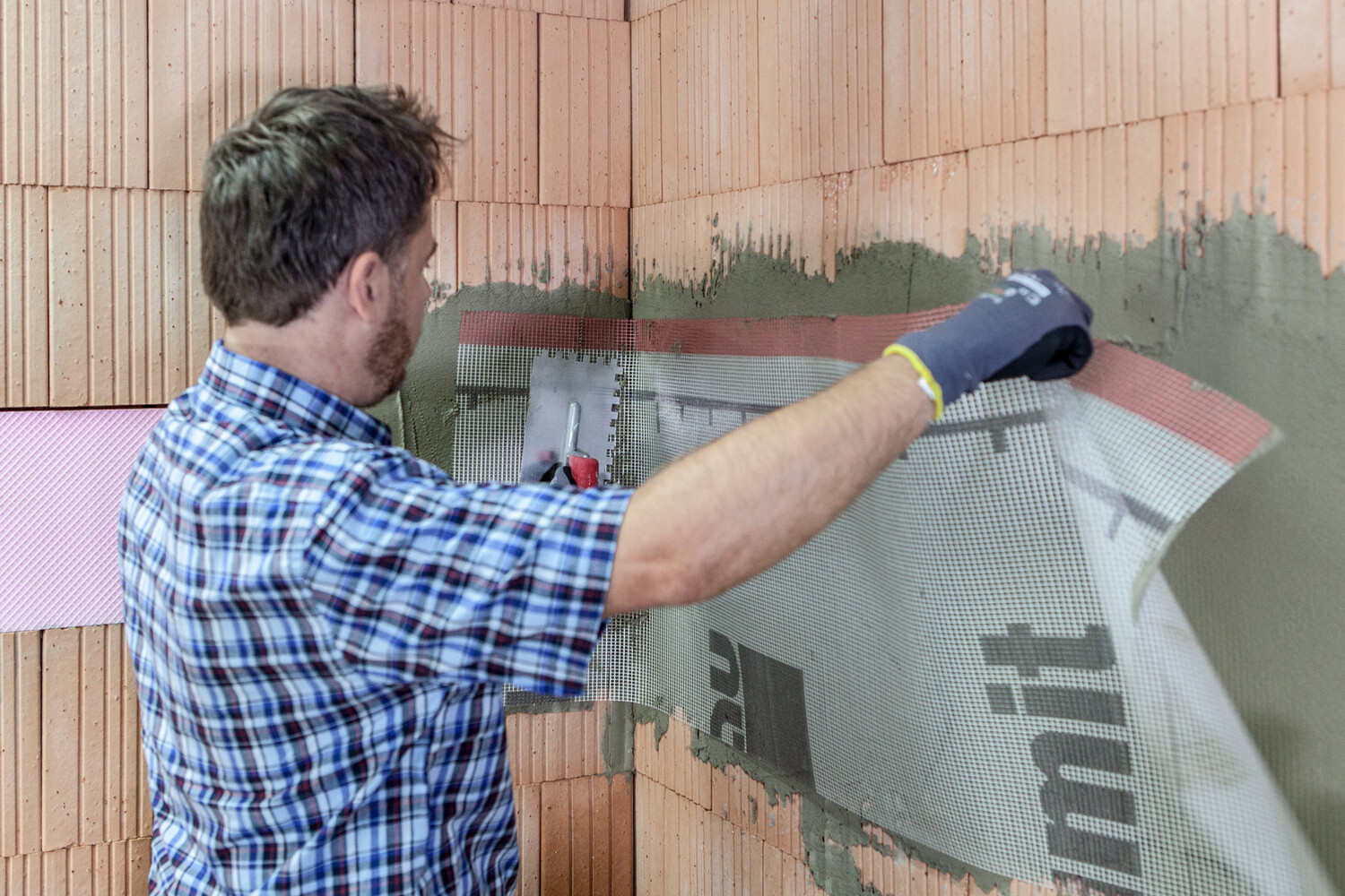 L'utilisation d'une toile d'armature ou d'un tissu d'enduit te permet de minimiser le risque de fissures dans l'enduit. Les supports typiques sont par exemple les maçonneries mixtes ou dans la zone de jonction d'un changement de matériau dans le Support. En tant qu'armature diagonale, elle est utilisée en bandes à tous les coins des ouvertures de la maçonnerie (fenêtres, portes, etc.).